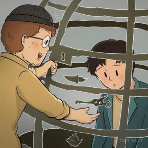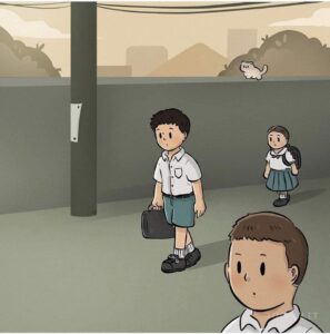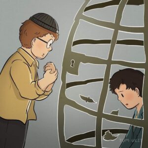 He begins turning the pain outward: he bullies weaker kids at school, stabs classmates with the same red arrows that once wounded him, and even lashes out physically.