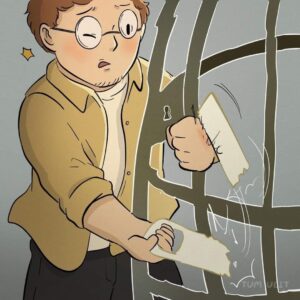 He has turned the trauma into “art.” The crowd admires the grotesque creatures he once drew to process his fear.