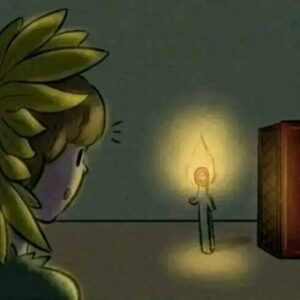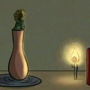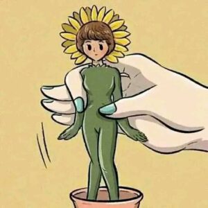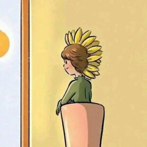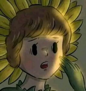 3. From the vase grows a small sunflower girl. She only blooms when the matchstick boy burns himself to give her light and warmth.
