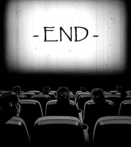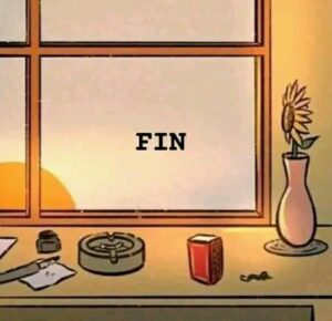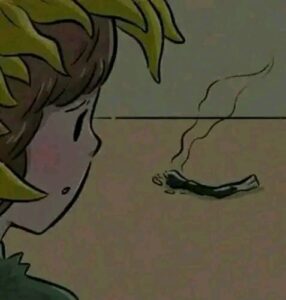 6. In the end, the sunflower is fully grown and radiant, sitting in sunlight during the day… but the matchbox is now closed, the burnt match lies dead on the floor, and the boy is gone forever.
