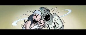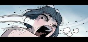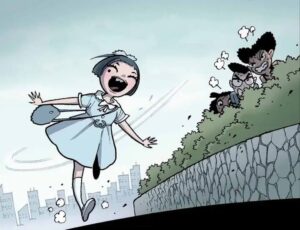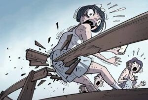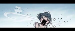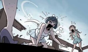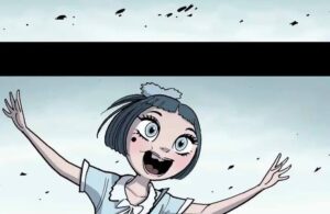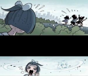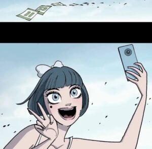- Every time the girl appears “happy” and takes selfies, she’s actually forcing herself into strangers’ lives. The black vomit, cold wind, swirling debris, and motion lines are classic horror indicators that something supernatural and malevolent is happening.