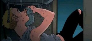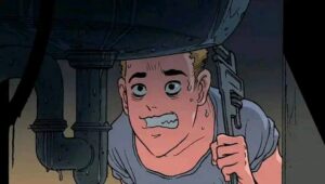 7–8. Woman smiles seductively asks if he’s going to keep working or come out and “take care of her.” Plumber is sweating bullets, torn between professionalism and temptation.
